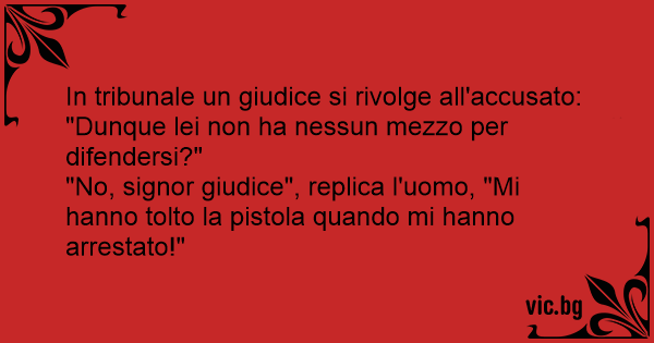 "No, signor giudice", replica l'uomo, "Mi hanno tolto la рisтоlа quando mi hanno arrestato!"