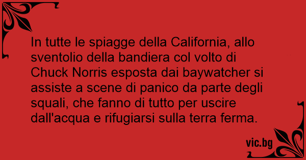 In tutte le spiagge della California, allo sventolio della bandiera col volto di Chuck Norris esposta dai baywatcher si assiste a scene di panico da parte degli squali, che fanno di tutto per uscire dall'acqua e rifugiarsi sulla terra ferma.