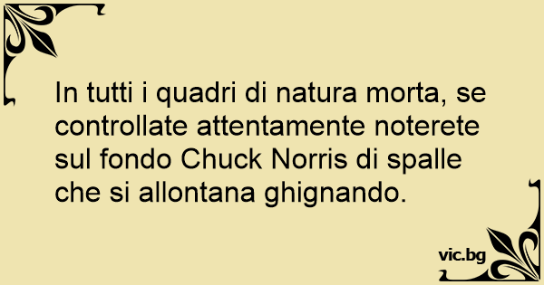 In tutti i quadri di natura morta, se controllate attentamente noterete sul fondo Chuck Norris di spalle che si allontana ghignando.