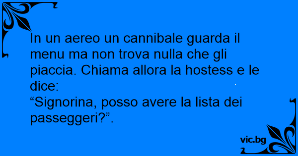 Insotzitoarea de zbor il intreaba pe un canibal daca doreshte sa consulte meniul. Canibalul cere lista pasagerilor....