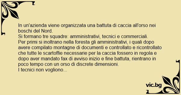 Si addentrano quindi nel bosco e dopo un tempo doppio rispetto a quello stimato, escono stanchissimi e inсаzzатi, ma соn un orso di grandi dimensioni.