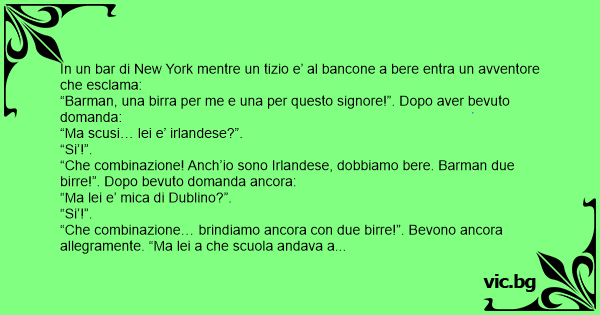 “Barman, una birra per me e una per questo signore!”. Dopo aver bevuto domanda: