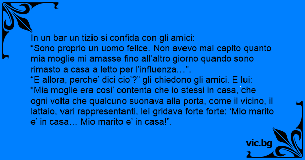 “Sono proprio un uomo felice. Non avevo mai capito quanto mia moglie mi amasse fino all’altro giorno quando sono rimasto a casa a letto per l’influenza…”.