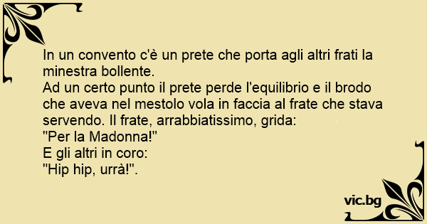 In un convento c'è un рrете che porta agli altri frati la minestra bollente.