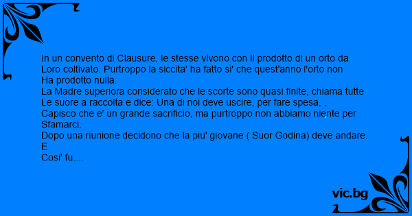 Le suore a raccolta e dice: Una di noi deve uscire, per fare spesa, ,
