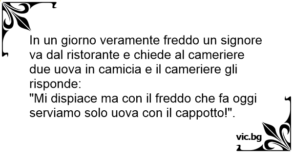 In un giorno veramente freddo un signore va dal ristorante e chiede al cameriere due uova in camicia e il cameriere gli risponde: