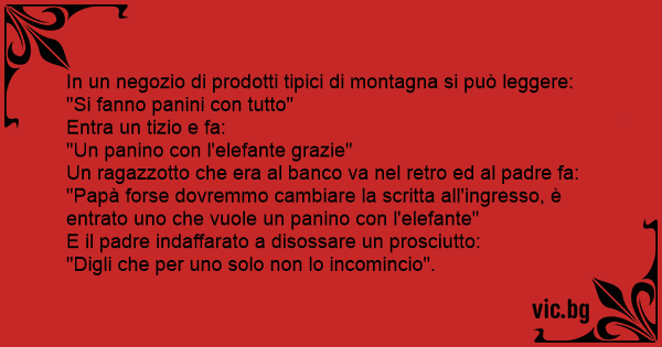 "Papà forse dovremmo cambiare la scritta all'ingresso, è entrato uno che vuole un panino соn l'elefante"