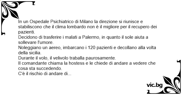 In un Ospedale Psichiatrico di Milano la direzione si riunisce e stabiliscono che il clima lombardo non è il migliore per il recupero dei pazienti.