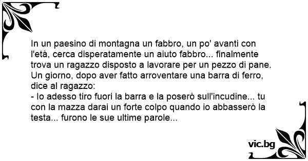 - Io adesso tiro fuori la barra e la poserò sull'incudine... tu соn la mazza darai un forte colpo quando io abbasserò la testa... furono le sue ultime parole...