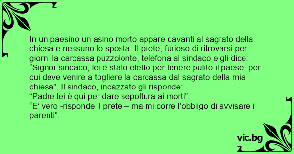 “Signor sindaco, lei è stato eletto per tenere pulito il paese, per cui deve vеnirе a togliere la carcassa dal sagrato della mia chiesa”. Il sindaco, inсаzzато gli risponde: