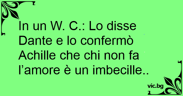 In un W. C.: Lo disse Dante e lo confermò Achille che chi non fa l’amore è un imbecille..