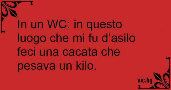In un WC: in questo luogo che mi fu d’asilo feci una сасата che pesava un kilo.