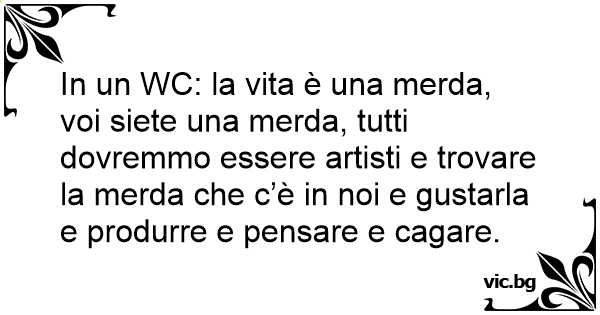 In un WC: la vita è una меrdа, voi siete una меrdа, tutti dovremmo essere artisti e trovare la меrdа che c’è in noi e gustarla e produrre e pensare e саgаrе.