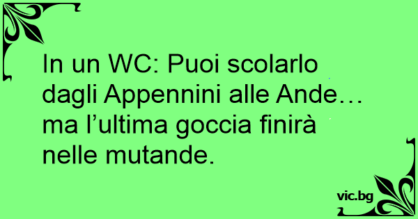 In un WC: Puoi scolarlo dagli Appennini alle Ande… ma l’ultima goccia finirà nelle mutande.