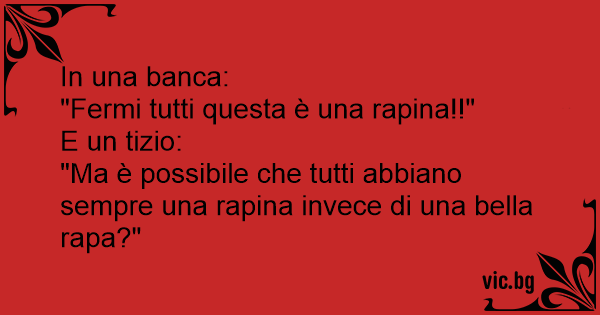 "Ma è possibile che tutti abbiano sempre una rapina invece di una bella rapa?"