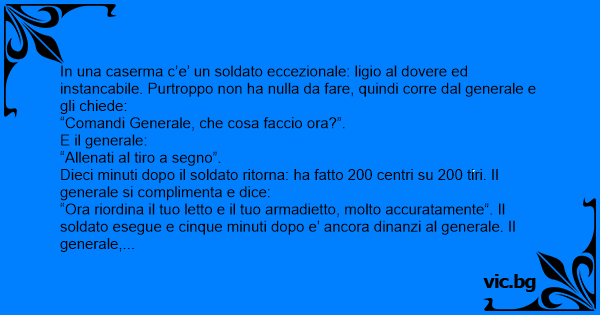 Dieci minuti dopo il soldato ritorna: ha fatto 200 centri su 200 tiri. Il generale si complimenta e dice: