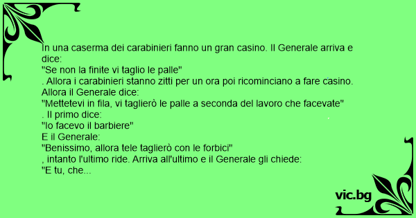 . Allora i carabinieri stanno zitti per un ora poi ricominciano a fare casino. Allora il Generale dice: