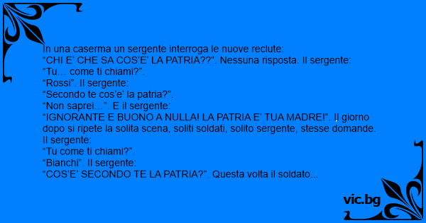 “CHI E’ CHE SA COS’E’ LA PATRIA??”. Nessuna risposta. Il sergente:
