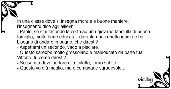 In una classe dove si insegna morale e buone maniere, l'insegnante dice agli allievi: