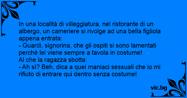 - Guardi, signorina, che gli ospiti si sono lamentati perchè lei viene sempre a tavola in costume!