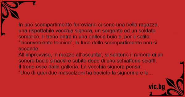 C'è un romanista e un laziale nel treno. Il treno si ferma e sale una modella... Il treno entra in una galleria e non si vede niente e si sente il rumore di un bacio seguito da uno schiaffo. Usciti...