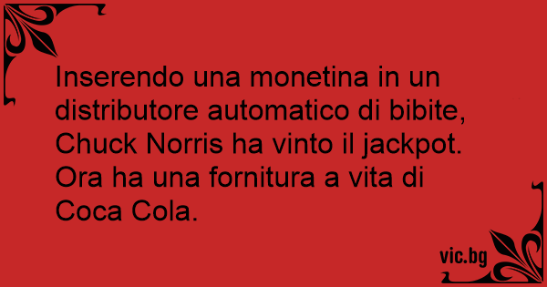 Inserendo una monetina in un distributore automatico di bibite, Chuck Norris ha vinto il jackpot. Ora ha una fornitura a vita di Coca Cola.