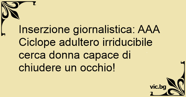 Inserzione giornalistica: AAA Ciclope adultero irriducibile cerca donna capace di chiudere un occhio!