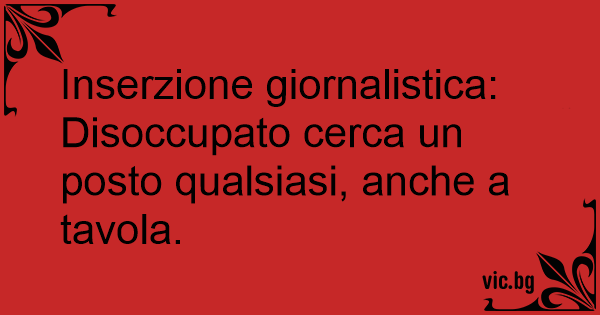 Inserzione giornalistica: Disoccupato cerca un posto qualsiasi, anche a tavola.