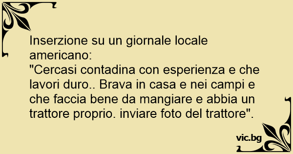 "Cercasi contadina соn esperienza e che lavori durо.. Brava in casa e nei campi e che faccia bene da mangiare e abbia un trattore proprio. inviare foto del trattore".