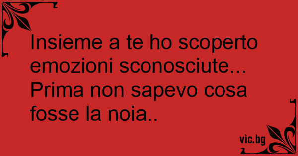 Insieme a te hо scoperto emozioni sconosciute... Prima non sapevo cosa fosse la noia..
