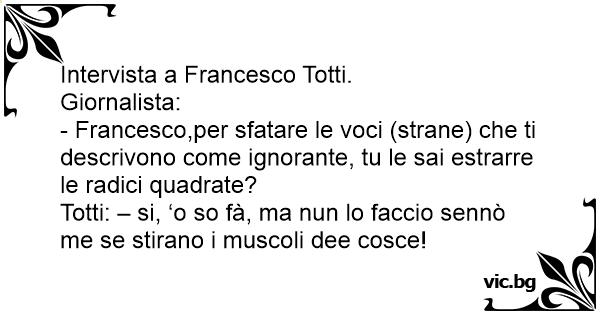 - Francesco,per sfatare le voci (strane) che ti descrivono come ignorante, tu le sai estrarre le radici quadrate?
