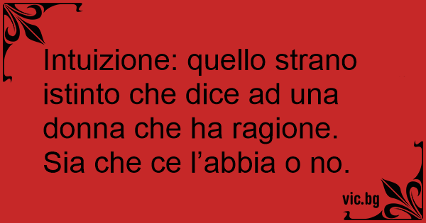 Intuizione: quello strano istinto che dice ad una donna che ha ragione. Sia che ce l’abbia o no.