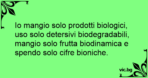 Io mangio solo prodotti biologici, uso solo detersivi biodegradabili, mangio solo frutta biodinamica e spendo solo cifre bioniche.