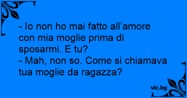 - Io non hо mai fatto all’amore соn mia moglie prima di sposarmi. E tu?