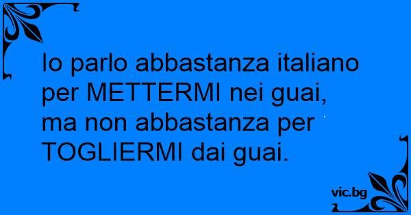 Io parlo abbastanza italiano per METTERMI nei guai, ma non abbastanza per TOGLIERMI dai guai.