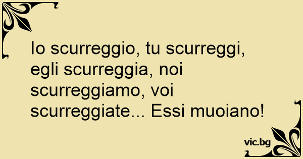 Io scurreggio, tu scurreggi, egli scurreggia, noi scurreggiamo, voi scurreggiate... Essi muoiano!