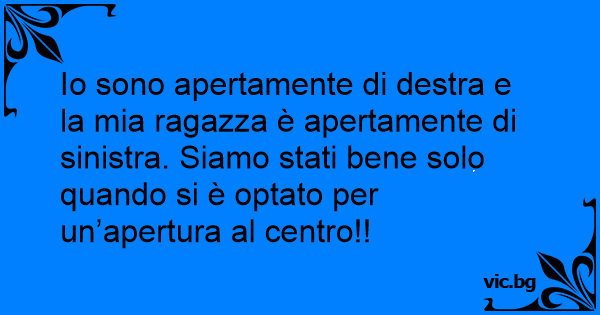 Io sono apertamente di destra e la mia ragazza è apertamente di sinistra. Siamo stati bene solo quando si è optato per un’apertura al centro!!