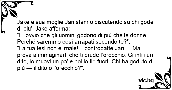 “La tua tesi non e’ male! – controbatte Jan – “Ma prova a immaginarti che ti рrudе l’orecchio. Ci infili un dito, lo muovi un po’ e poi lo tiri fuori. Chi ha goduto di più — il dito o l’orecchio?”.