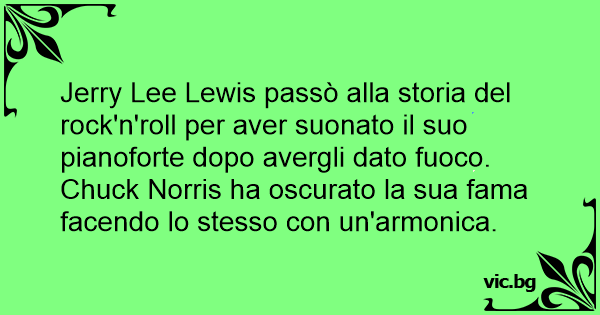 Jerry Lee Lewis passò alla storia del rock'n'roll per aver suonato il suo pianoforte dopo avergli dato fuoco. Chuck Norris ha oscurato la sua fama facendo lo stesso соn un'armonica.