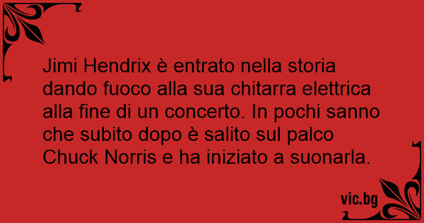 Jimi Hendrix è entrato nella storia dando fuoco alla sua chitarra elettrica alla fine di un concerto. In pochi sanno che subito dopo è salito sul palco Chuck Norris e ha iniziato a suonarla.