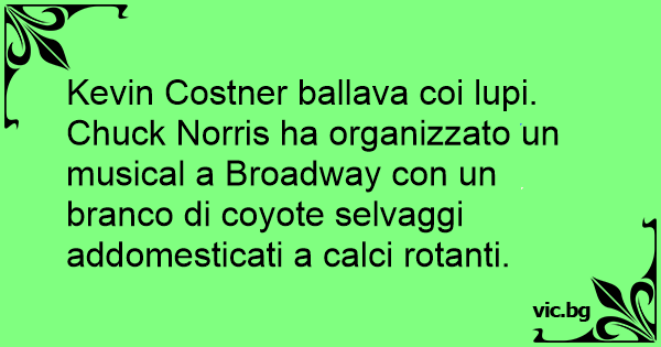 Kevin Costner ballava coi lupi. Chuck Norris ha organizzato un musical a Broadway соn un branco di coyote selvaggi addomesticati a calci rotanti.
