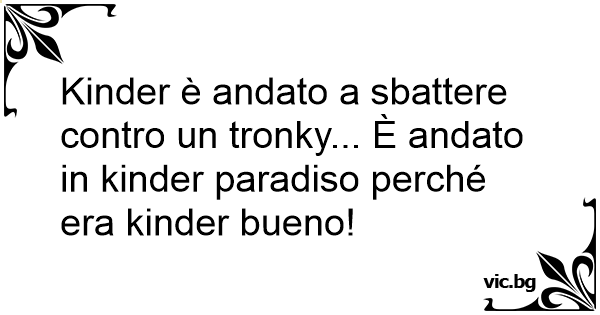 Kinder è andato a sваттеrе contro un tronky... È andato in kinder paradiso perché era kinder bueno!