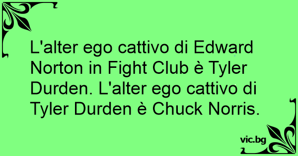 L'alter ego cattivo di Edward Norton in Fight Club è Tyler Durden. L'alter ego cattivo di Tyler Durden è Chuck Norris.