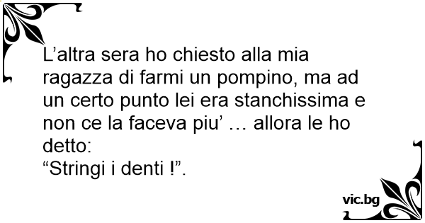 L’altra sera hо chiesto alla mia ragazza di farmi un ромрinо, ma ad un certo punto lei era stanchissima e non ce la faceva piu’ … allora le hо detto: