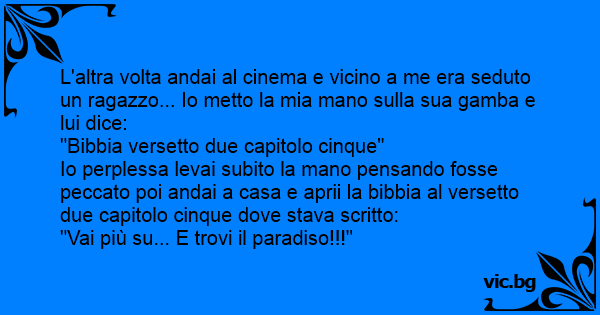 Io perplessa levai subito la mano pensando fosse peccato poi andai a casa e aprii la bibbia al versetto due capitolo cinque dove stava scritto: