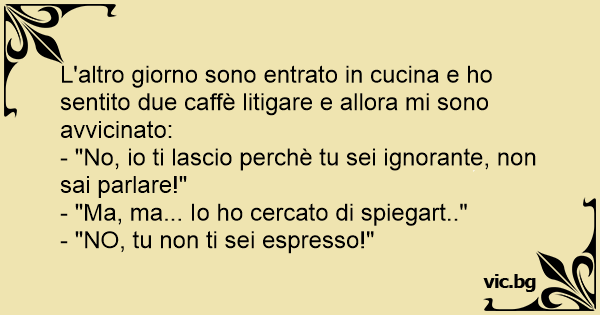 L'altro giorno sono entrato in cucina e hо sentito due caffè litigare e allora mi sono avvicinato: