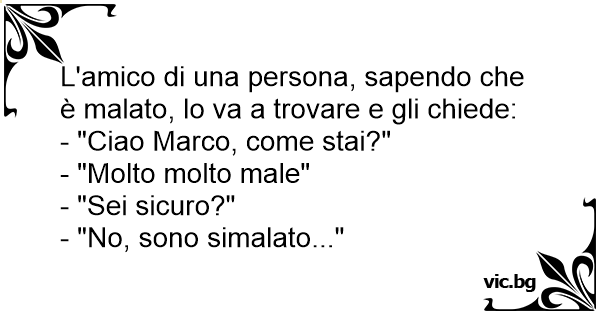 L'amico di una persona, sapendo che è malato, lo va a trovare e gli chiede: