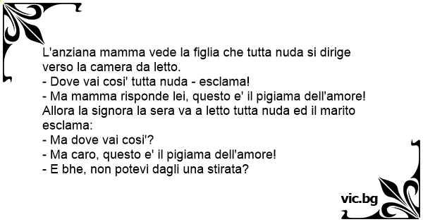 Allora la signora la sera va a letto tutta nuda ed il marito esclama: