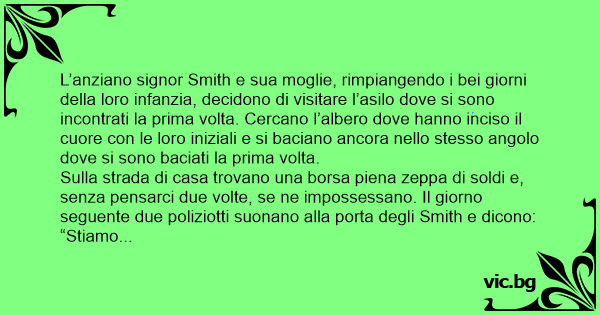 La donna nega, ma il marito, sentendosi in colpa, inizia a confessare. “Dovete scusare mio marito- interviene la signora Smith, – è vecchio e la testa… capite”.