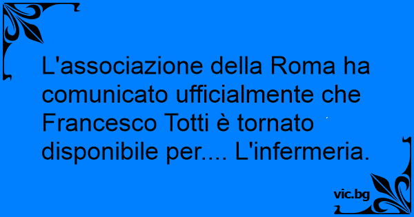 L'associazione della Roma ha comunicato ufficialmente che Francesco Totti è tornato disponibile per.... L'infermeria.